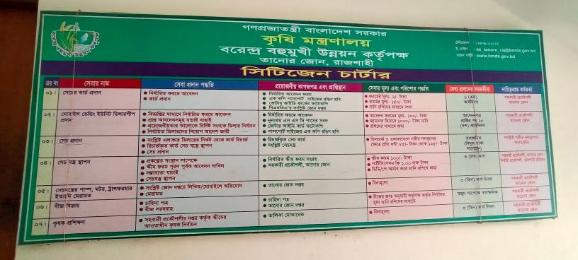 | ১। | বরেন্দ্র বহুমখী উন্নয়ন কর্তৃপক্ষের সিটিজেন চার্টারঃ | |
